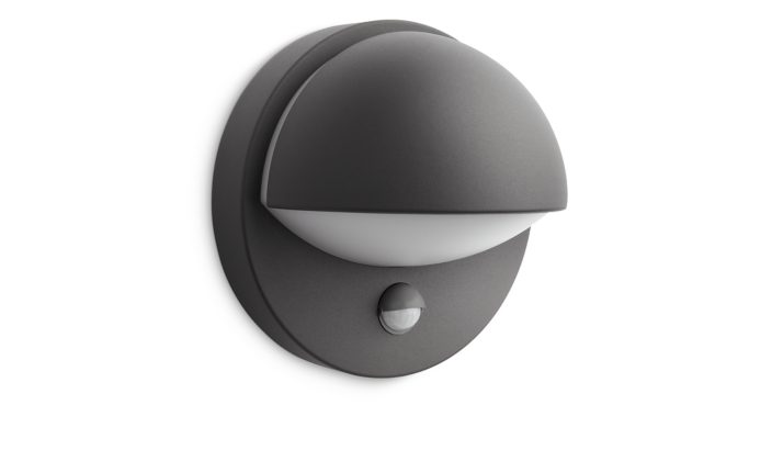 Współczesny styl jako ozdoba ogrodu. Kinkiet Philips myGarden w kolorze antracytowym ma czujnik ruchu i przykuwa wzrok swoim smukłym wyglądem. Emituje ciepłe, białe, energooszczędne światło i wita Cię za każdym razem, gdy wracasz do domu.