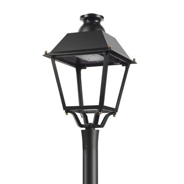Urban road & street light, Aluminium, Czarny, Montaż bezpośrednio na słupie do średnicy 60 mm, Zasilacz (wł./wył.), 3250 lm, 38 W, 86 lm/W, 3000 K, (0.381, 0.379) SDCM <5, CRI80, Średni rozsył 50, IP66 | Zabezpieczone przed przenikaniem kurzu, strugoodporne, IK09 | 10 J, Klasa bezpieczeństwa II, Poziom ochrony przeciwprzepięciowej do 6 kV w trybie różnicowym i 8 kV w trybie wspólnym, Złączka 2-biegunowa typu Wieland/Adels