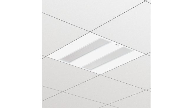 600x600 mm, Concealed profile ceiling version, Stal, Biel, Sygnałowy biały (RAL9003), Obsługa systemu ściemniania przez DALI Interact (zewnętrzny) do centralnego oświetlenia awaryjnego, 4200 lm, 30.5 W, 138 lm/W, 3000 K, (0.38, 0.37) SDCM ≤3, CRI>90, UGR19, Szeroki rozsył światła, Strukturalna optyka, poliwęglan, IP20/54 | Ochrona przed dotknięciem palcem; zabezpieczenie przed gromadzeniem się kurzu, bryzgoodporne, IK02 | 0,2 J standardowa, Klasa bezpieczeństwa I, GST18/3 Wieland/Adels do podłączenia zasilania + BST14/2 Wieland dla wersji DALI, Centralne oświetlenie awaryjne zasilane prądem stałym