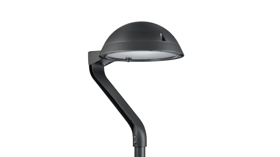 Urban road & street light, Odlew aluminiowy, Szary, Montaż bezpośrednio na słupie do średnicy 62 mm, Zasilacz (wł./wył.), 5840 lm, 60 W, 97 lm/W, 3000 K, (0.410, 0.390) SDCM <5, CRI80, Rozsył symetryczny 50, IP66 | Zabezpieczone przed przenikaniem kurzu, strugoodporne, IK09 | 10 J, Klasa bezpieczeństwa II, Standardowy poziom ochrony przeciwprzepięciowej, Złączka wewnętrzna